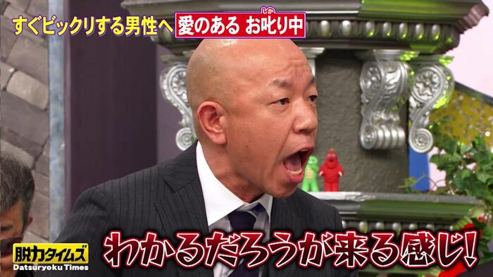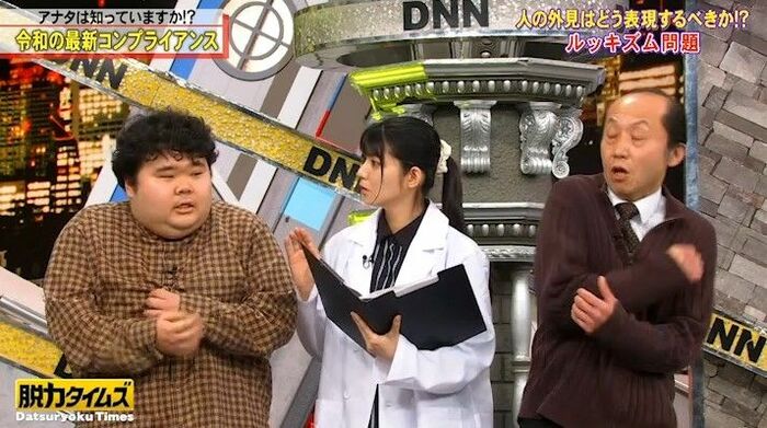 専門家が、“見た目のいじり方”の悪い例を説明する際、ふくよかな男性の体に軽く触れると、男性が「ひゃ!」と言って敏感に反応。これに、隣りの薄毛の男性が「うわっ」と驚きの声をあげてしまい…。