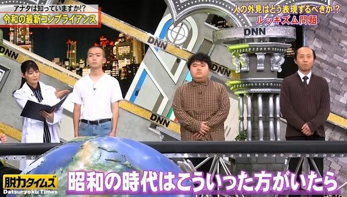 「ルッキズム」の解説では、専門家と細身・ふくよか・薄毛の3人の男性が登場。
