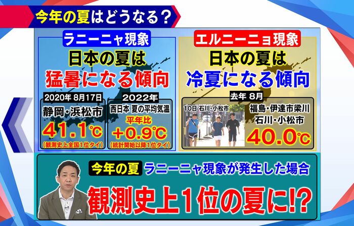 何が1位かというと暑さもそうですが長さだと思います。夏がものすごく長くなる可能性があるというのは…「ラニーニャ現象」が起きるのがおそらく夏の後半から秋なんです。
