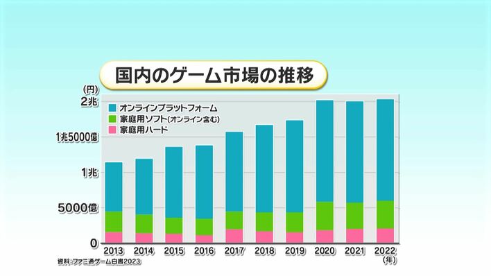 2020年から3年連続で2兆円を超える国内ゲーム市場ですが、そのほとんどを占めているのはオンラインゲームです。