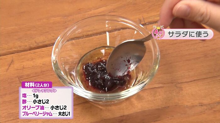 また、ジャムを、塩、酢、オリーブオイルと合わせれば自家製ドレッシングに。