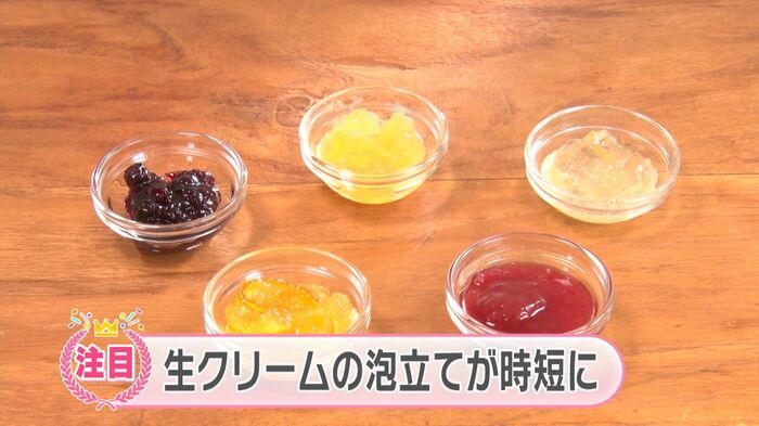 ジャムに含まれるペクチンは、ホイップクリームの泡立てを時短してくれる効果があります。