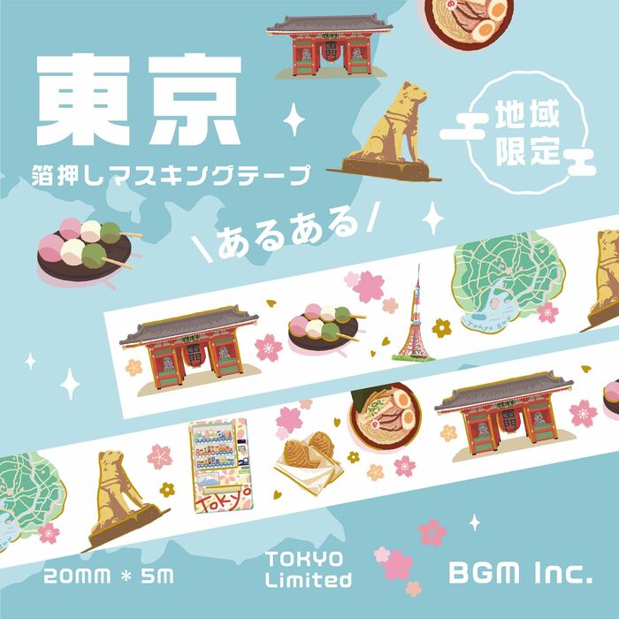 「地域限定・東京」のマスキングテープが登場。 美味しい食べ物や「雷門」「ハチ公像」など東京らしさをつめこんだデザインです。「文具女子博pop-up in 新宿2024」ご来場の記念にいかがでしょうか。※おひとり様1点まで