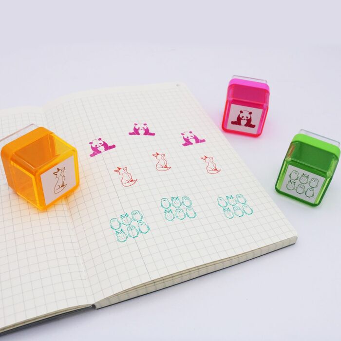 ペンケース付きノートの「isshoni.」シリーズで人気のダイゴー株式会社から、文具女子博限定柄スタンプが登場。パンダ、きつね、ふくろうの3柄です。ノートや手帳のデコレーションにポンポン押して楽しんでください。