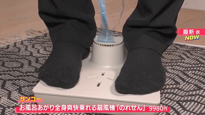 『お風呂あがり全身爽快乗れる扇風機「のれせん」(9980円)』はその名の通り、扇風機の上に体重計のように上に立って使用する“新感覚”扇風機。