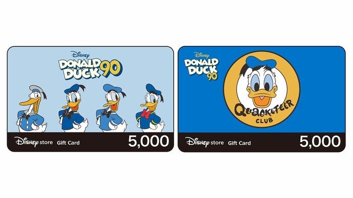 ディズニーストア店舗とディズニーストア.jpで利用できるギフトカード、eギフトカードにもドナルド90周年記念デザインが登場。