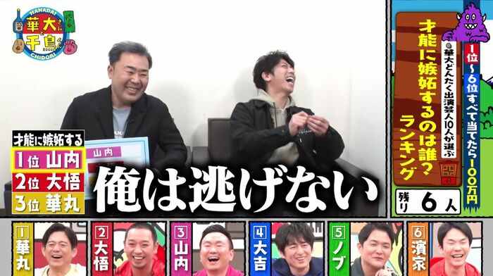 陣内さんは「山内の狂気的な感じとか、発想力とか。僕にはないものを持ってる」という理由で、山内さんを1位に。