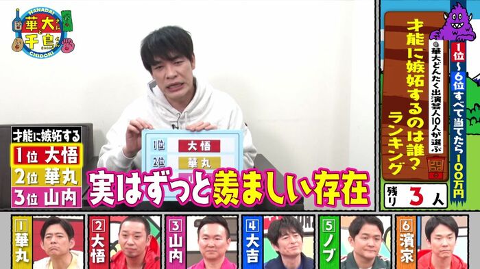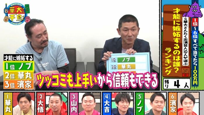 津田さんが、欲丸出しで「(1人あたり)10ちょいね!」と言うと、ノブさんから「(ランキングに選ばれる)リスクも背負ってないやん」とツッコミが入りました。