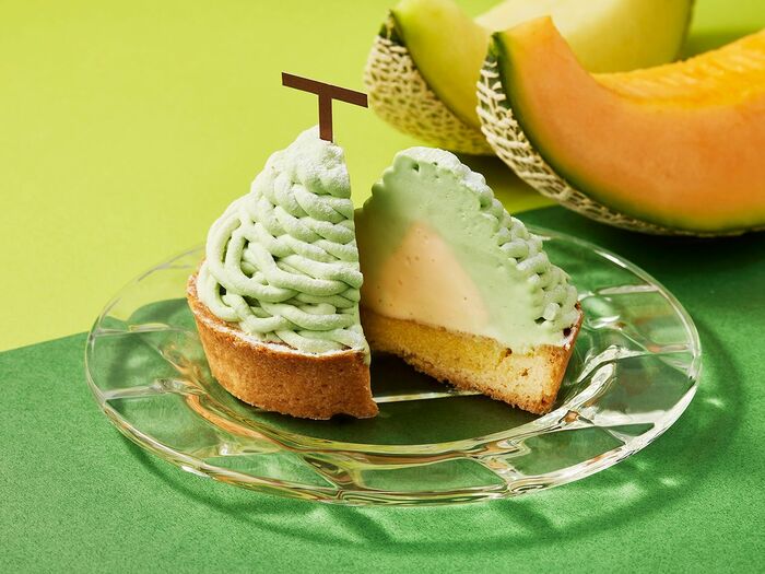 メロンの皮をイメージした上品な模様のクリームと、サクサクとしたタルト生地がマッチしたメロン風味のモンブランです。中には赤いメロン果肉をイメージしたオレンジ色のクリームを包み込んでおり、見た目もお楽しみいただける夏らしいスイーツです。