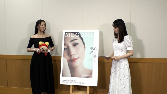 会見終了後、MEGUMIさんに『めざましテレビ』の谷尻萌キャスターがインタビューしました。