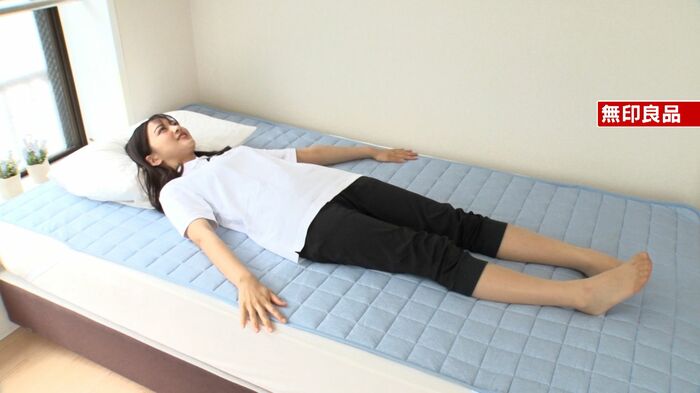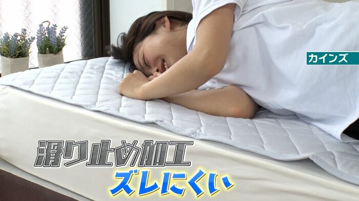 原田アナも「ふかふかしていて気持ちいいです。ひんやり感もしっかり感じられます」と、つい寝てしまいそうなくらい気持ちよさそうです。