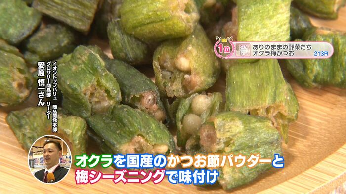 「オクラの梅かつお」をイメージして作られており、サクサクにフライしたオクラを、紀州産梅の梅肉パウダーと梅シーズニング、枕崎産のかつお節パウダーで味付け。