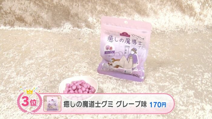 ビタミンCやコラーゲンなどが入っている、甘酸っぱいグレープ味のグミです。