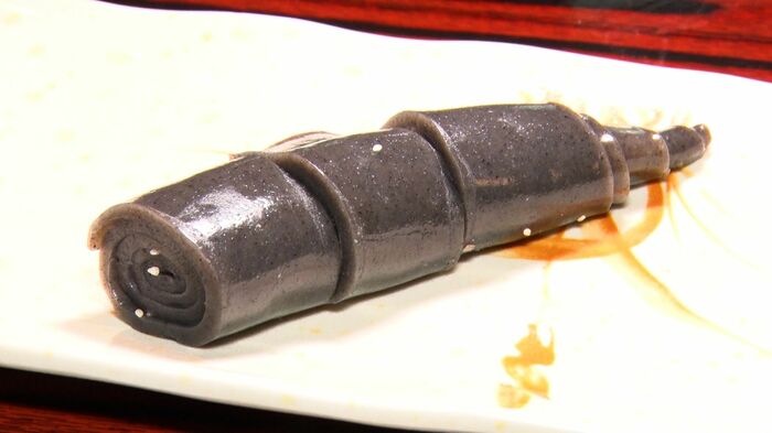 「ミシュランガイド掲載店…ただ何の食べ物かわからない」というレビューの通り、見た目が怪しい黒い棒状のお菓子が大人気だといいます。