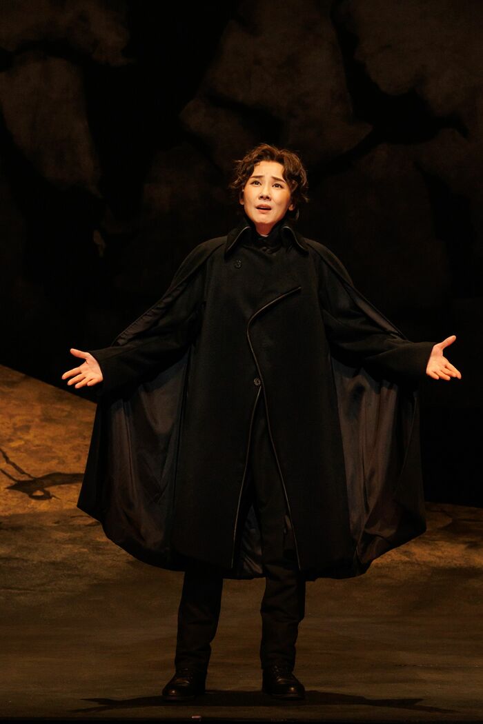 2021年上演の『ジュリアス・シーザー』に続いての男性役ですが、男性を意識した役作りは低く発声することぐらいしかしていません。今回は女性である私が演じるからこその女性としての身体機能を逆手に取った演出もありますので、ぜひ楽しみに観ていただければと思います。