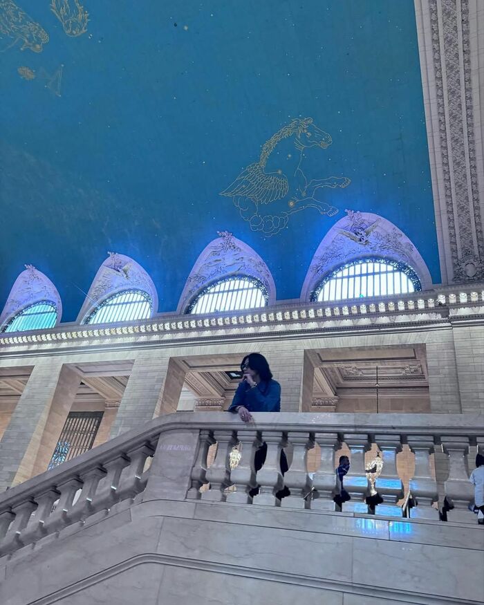 別の写真では、グランドセントラルターミナルの階段の手すりに肘をついている神宮寺さんの姿や…