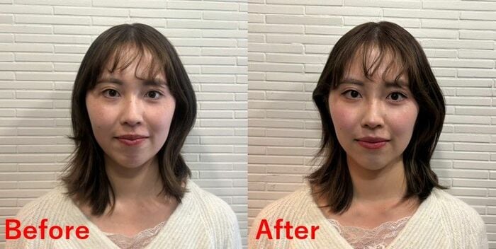 アップショットも比較すると、以前より目が大きく見えてうれしいです!肌のツヤ感も感じられますね。