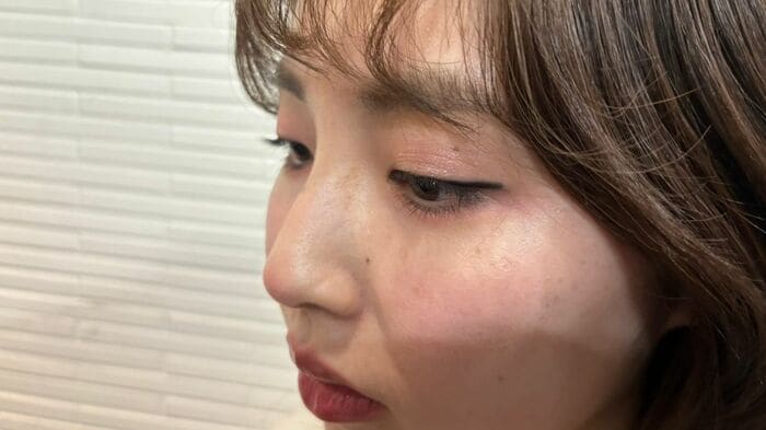 伏し目にすると、まぶたについたラメがキラッと優しげに光っていました。