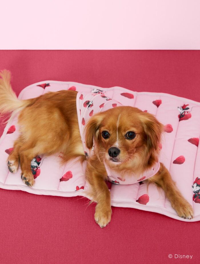 また、ミニーマウスとフルーツ柄を散りばめた接触冷感素材のプルオーバーとマットも。夏にひんやり心地いい接触冷感素材を使用したなめらかな素材のプルオーバーは、抱っこする飼い主さんにも嬉しいポイントです。お揃いの柄を使用した接触冷感のCOOLマットは、45×60cmのコンパクトなサイズになっていて、キャリーや車で移動するときにも持ち運びやすいグッズです。