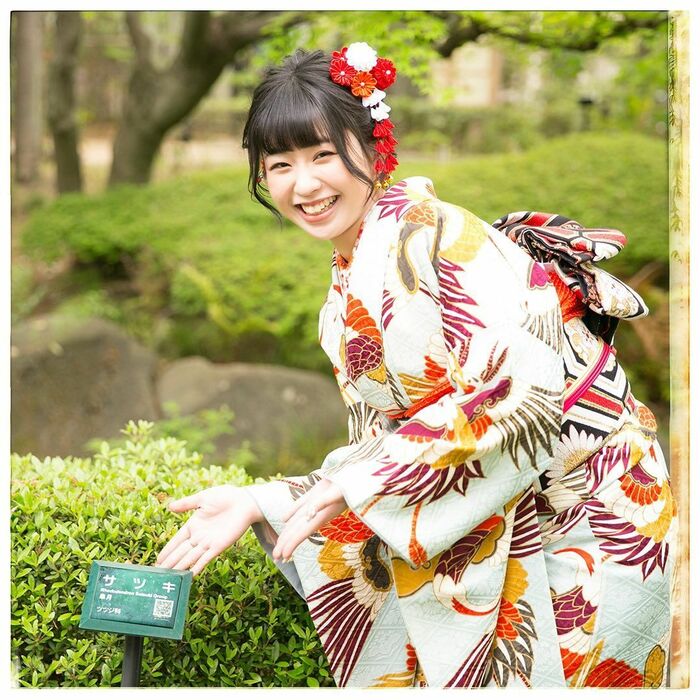 投稿ではあさぎ色の地に鶴の柄が描かれた振り袖に身を包んだ写真とともに、「20歳になりました おそらく再来年は22歳です」と20歳の誕生日を迎えたことを報告しました。