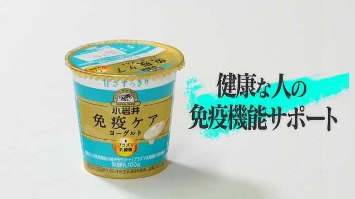 女性が手にしたのは、健康な人の免疫機能をサポートするというヨーグルト。