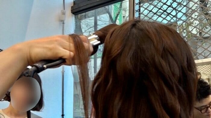 編集部員は、最近NewJeansのダニエルさんやTWICEのサナさんなど大人気アイドルもしていた『ヒッピーパーマ』の巻き髪をオーダー。