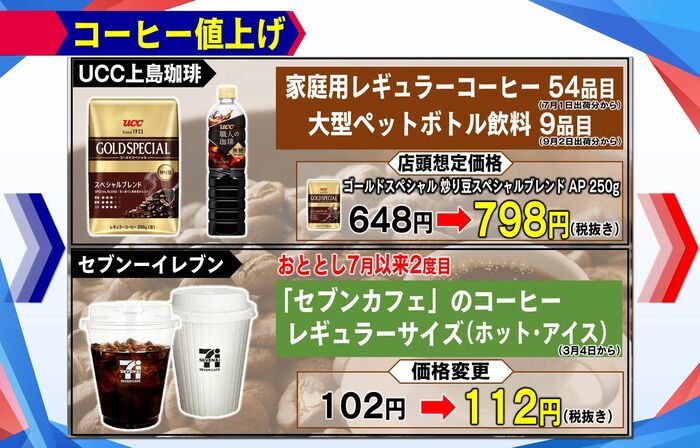 これに伴い、UCC上島珈琲は家庭用レギュラーコーヒー54品目を7月1日出荷分から、そして、大型ペットボトルの飲料9品目を9月2日出荷分から値上げすると発表。