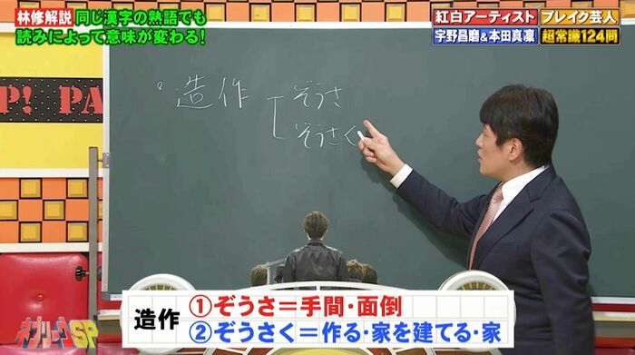 漢字を書く問題では、林修先生がクイズに出題された「無造作」の「造作」の読み方について、補足しました。