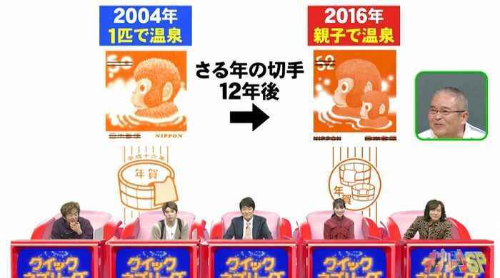 また、2004年の申(さる)年の年賀状では1匹で温泉に入っていたサルは、12年後の2016年には家族が増え、親子で温泉に行くというストーリーになっているそうです。