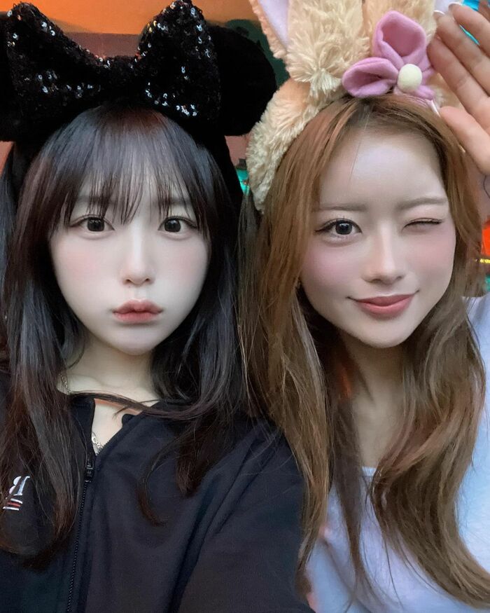 なえなのさんは、ミニーのカチューシャを付け、上下黒で揃えたコーデの写真を投稿。
