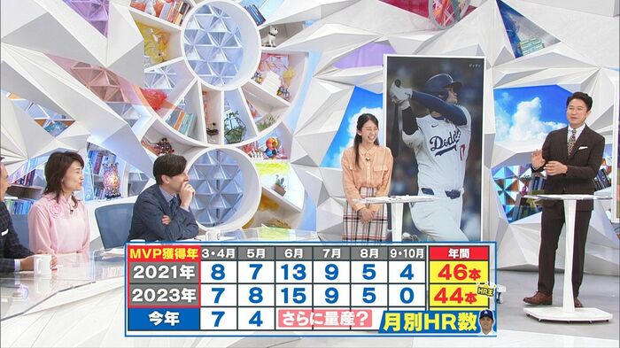 過去MVPをとった年の月間のホームラン数なんですが、6月がすごいんです。今年3・4月で7本、5月は中旬ですが4本、さらにここから量産していくとなると、50本という数字ももしかしたら見えてくるのかなと思っています。