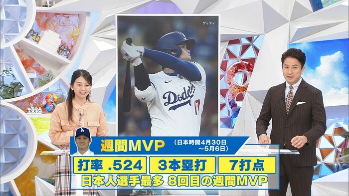 ちなみに前の週には打率5割2分4厘をキープしていまして、日本人としては最多タイとなる8回目の週間MVPをとっています。