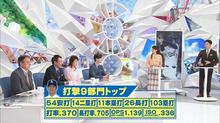 さらに数字で見てみますと、5月7日時点で、打撃の9部門でトップの数字を誇っています。シングルヒットが54本、二塁打は14本など。下段でOPSが1.139とありますが、これは特に打者の場合は大きく市場価値を高めるもので、出塁率と長打率を足した数字なんです。これが頭一つ抜けています。なのでこの部分を見ることでチームの得点に大きく貢献しているなということが分かります。