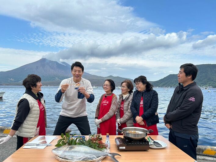 松岡修造さんが、錦江湾で育まれたカンパチにうなりました。