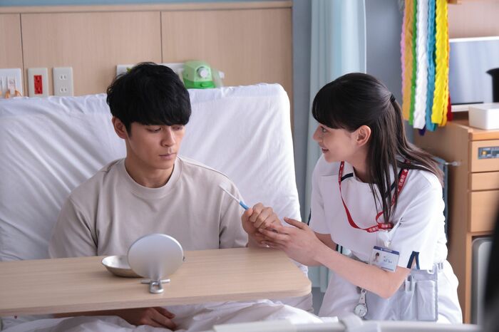 明日香と家族はがく然としながらも、遥斗の回復を祈って寄り添い、看護師の宮辺紗衣(夏子)が遥斗を介助する。