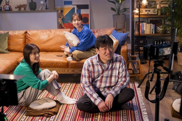 3人が、リビングをイメージしたセットに入ると早々、佐藤さんはジョークを飛ばし現場を和ませます。撮影中、佐藤さんは終始「監督!」と、台本とは異なる演技プランを提案。
