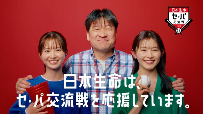 佐藤二朗さん、久間田琳加さん、飯沼愛さんが出演する、日本生命保険相互会社が特別協賛する「2024年度 日本生命セ・パ交流戦」の新CMが、5月7日より放映開始されました。