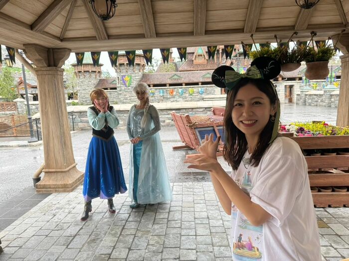 アレンデールの街中では、なんとアナとエルサにも出会うことができました。美しさのあまり小山内アナも歓喜!
