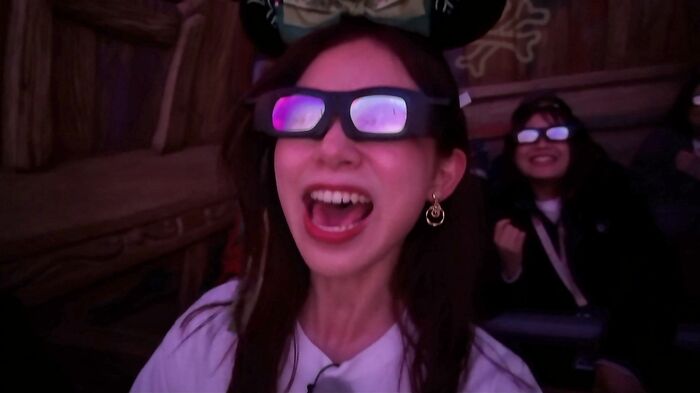 3D映像を使用したスリリングなアトラクション。本当に空を飛んでいるような感覚に、小山内アナは思わず絶叫していました。