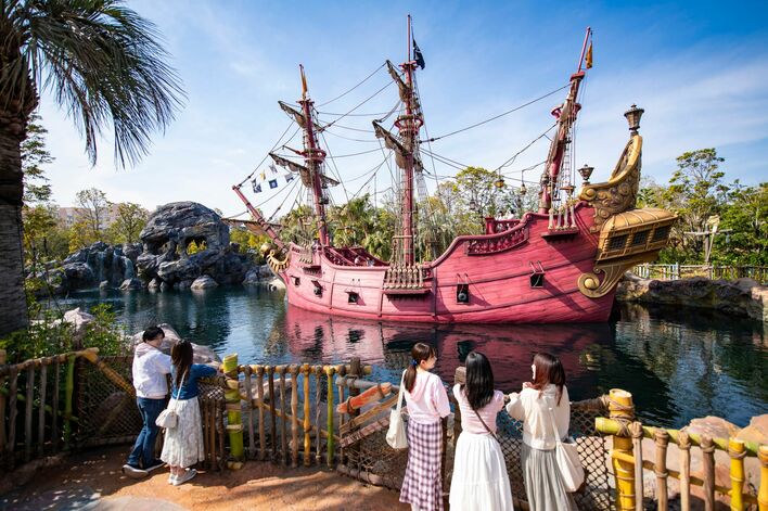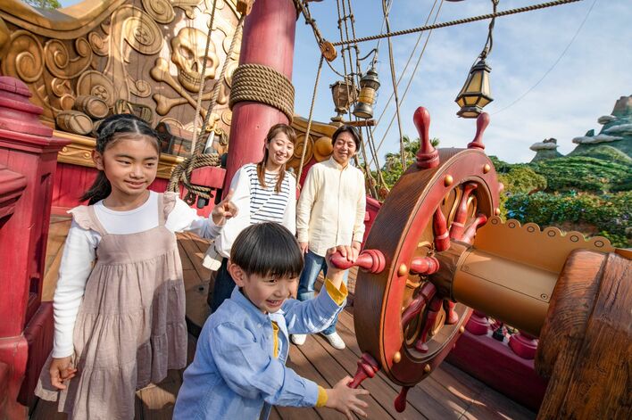 ディズニー映画『ピーター・パン』の世界が広がる「ピーターパンのネバーランド」では、ゲストは楽しいことが大好きで冒険心いっぱいの元気な子どもたちの集団、ロストキッズの一員となります。