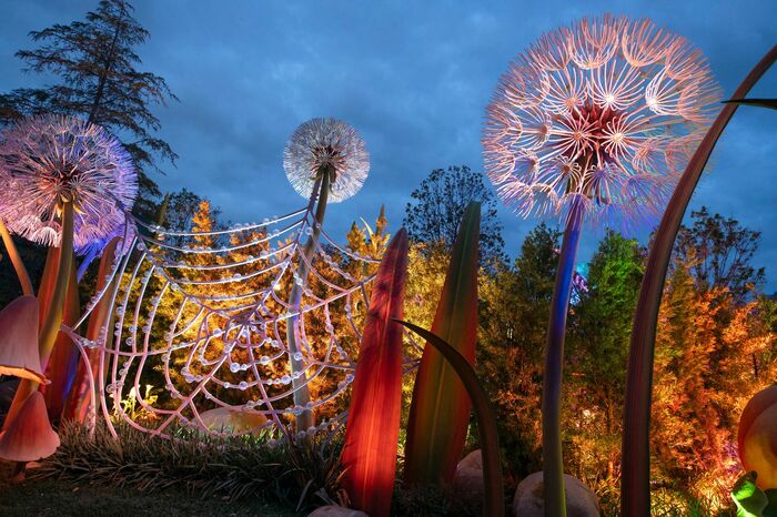 夜になると、ライトアップされた植物たちが幻想的で、また違った魅力がありました。