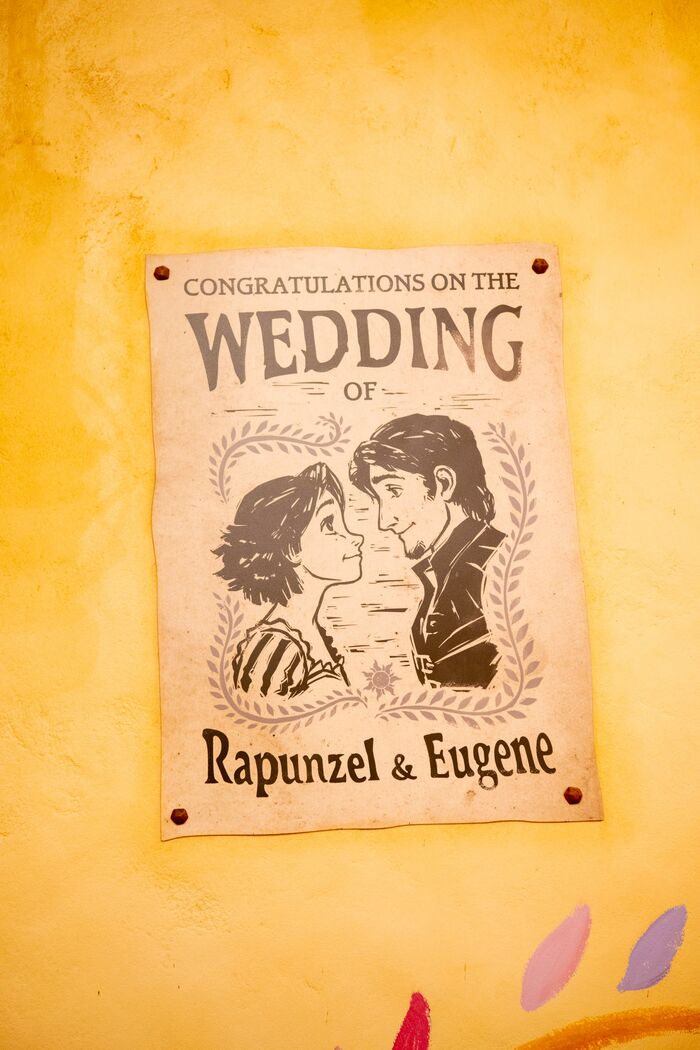 ラプンツェルのフリン・ライダーの結婚ポスターが貼られていました。