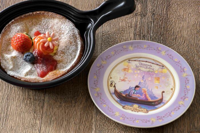 またお皿にも注目!映画の中でラプンツェルが身を守る道具として使ったフライパンがイメージされていて、見た目から映画の世界を感じられるデザートになっています。