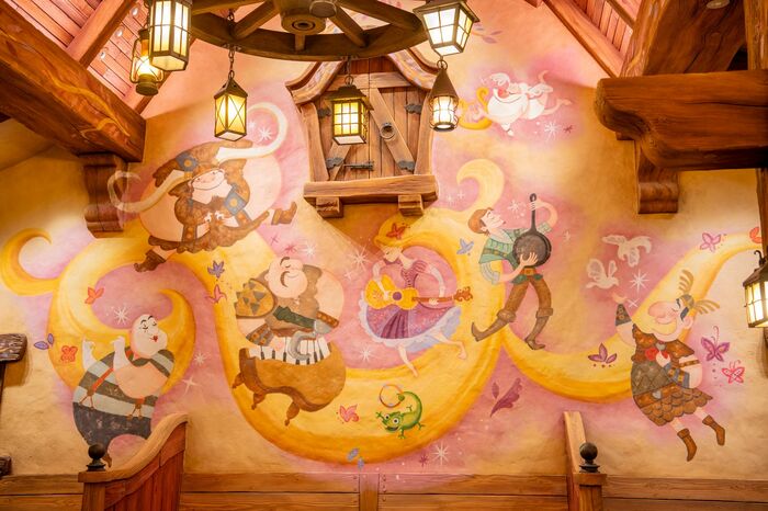 壁にはラプンツェルらが音楽を演奏する画や…。
