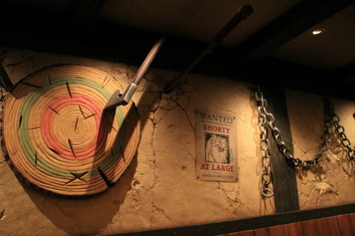 他にもマトに刺さった斧や荒くれ者たちのポスターも貼られており、映画の中で登場した酒場のイメージにぴったりです。