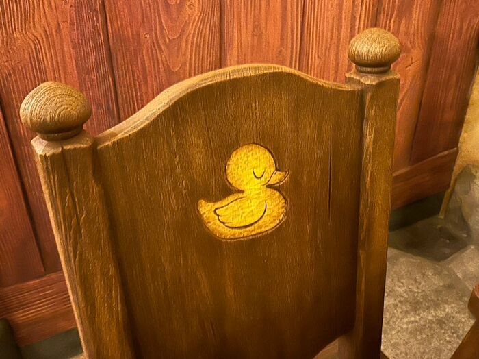 テーブルに向かうと、レストランの椅子にもアヒルのマークが。