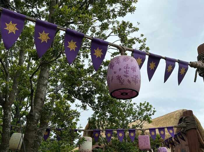 その他にも待機列には、ラプンツェルにまつわる装飾がたくさん。