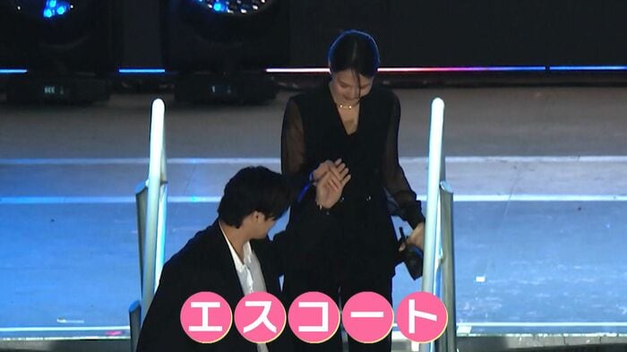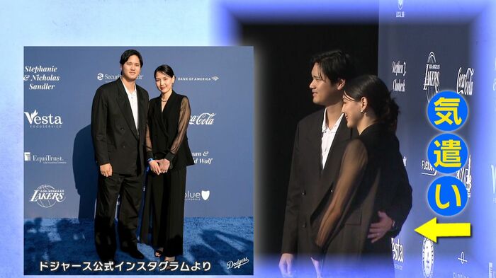 二人が腕を組んで登場するシーンもあり、階段を下りる際には大谷選手が真美子さんの手を取り優しくエスコートする姿もありました。