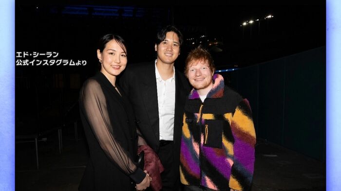 大谷選手は今回のイベントについて聞かれ「コンサート自体来るのが初めてなのでそれ自体をまず楽しみたい」とコメント。29歳にして"人生初コンサート"を体験しました。ステージにはグラミー賞歌手のエド・シーランが登場し、SNSでは大谷夫妻とのスリーショットを公開しました。