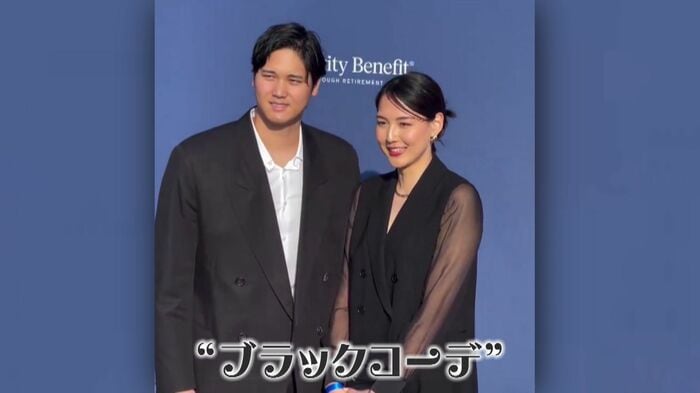 球団のチャリティーイベント『ブルー・ダイヤモンド・ガラ』に出席した大谷夫妻。大谷選手はシックな黒のセットアップ、真美子さんは両袖がシースルーになった黒のブラウス姿で登場し、写真撮影では肩を寄せ合っていた二人。